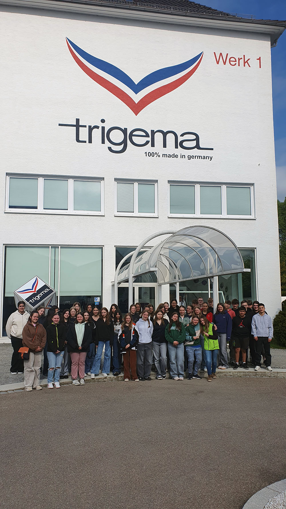 Am Donnerstag besuchte die Gruppe das Textilunternehmen TRIGEMA in Burladingen. Dort konnten die einzelnen Arbeitsschritte vom Faden bis zum fertigen Kleidungsstück beobachtet werden. Besonders hervorzuheben ist die Möglichkeit, die Maschinen und Arbeitsabläufe aus unmittelbarer Nähe zu erleben und einen direkten Einblick in die Tätigkeit der Mitarbeitenden zu erhalten.