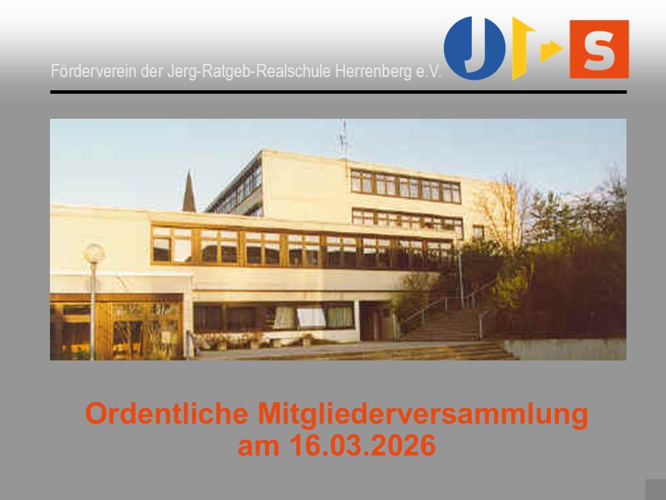 Einladung zur ordentlichen jährlichen Mitgliederversammlung 2026des Fördervereins der Jerg-Ratgeb-Realschule Herrenberg e.V. am Montag, den 16. März 2026, 19:30 Uhr in...