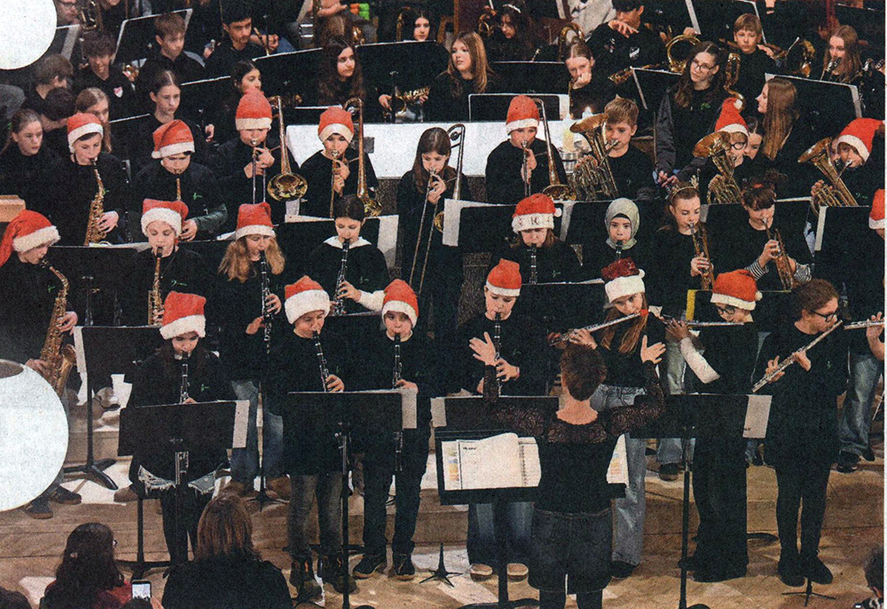 Den Abschluss eines wunderbaren Konzertes bildete die „Big Band", geleitet von Alexander Riegler und Anja Pfeifer, die mit den beschwingten Tönen von „Christmas Swings" an die Musik von Glenn Miller erinnerte. Auf das getragen präsentierte gefühlvolle Stück „Lenas Song" folgte „Can You Feel the Love Tonight", bei dem sich Alexis Alvarenga als Gesangssolistin mit eindrucksvoller Stimme hervortat. Mit „Rock the Halls" verabschiedete sich die „Big Band" fulminant und setzte ein großes Ausrufezeichen hinter ein abwechslungsreiches und stimmiges Programm. Die vier Solisten - Leonie Haag (Posaune), Samuel Schmid (Posaune), Emily Münzberg (Tenorsaxofon), Leonie Todaro (Klarinette) erhielten für ihre mitreißenden Darbietungen Zwischenapplaus und „Bravo"-Rufe.