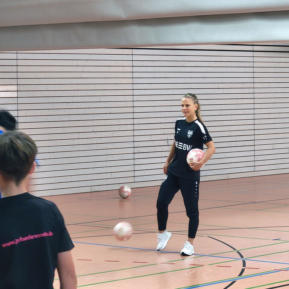 Ein besonderes Highlight war die Teilnahme von Leonie Maier, ehemalige deutsche Nationalspielerin, Europameisterin und Olympiasiegerin. Mit ihrer Erfahrung und ihrer offenen Art gab sie den Jugendlichen wertvolle Tipps und zeigte eindrucksvoll, worauf es im modernen Fußball ankommt.